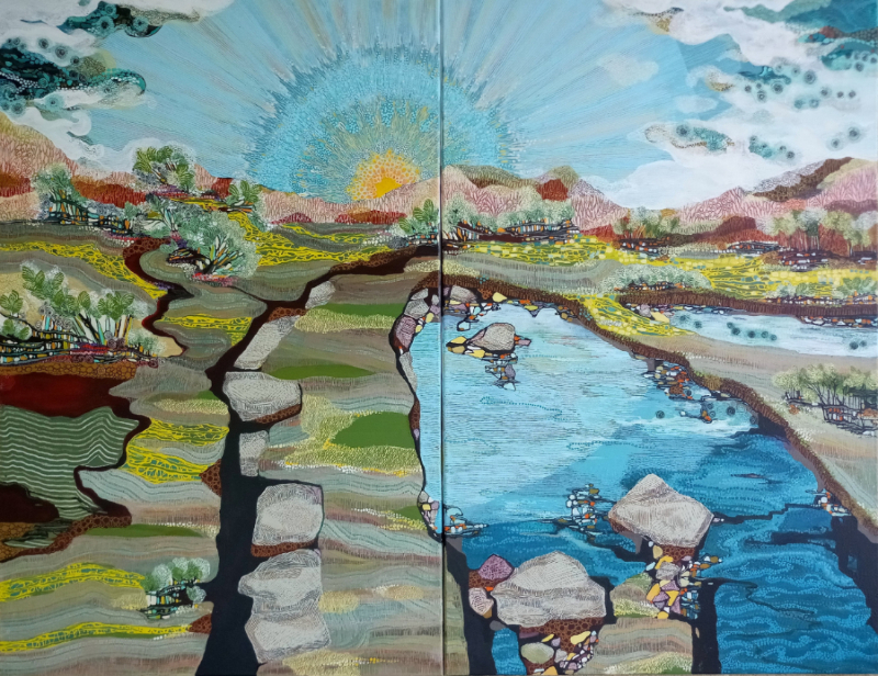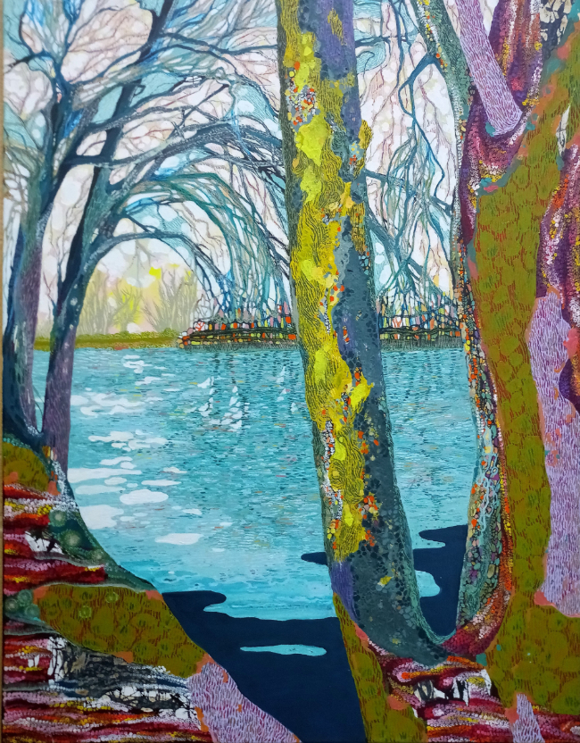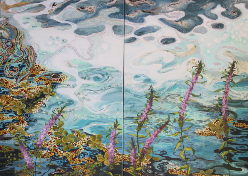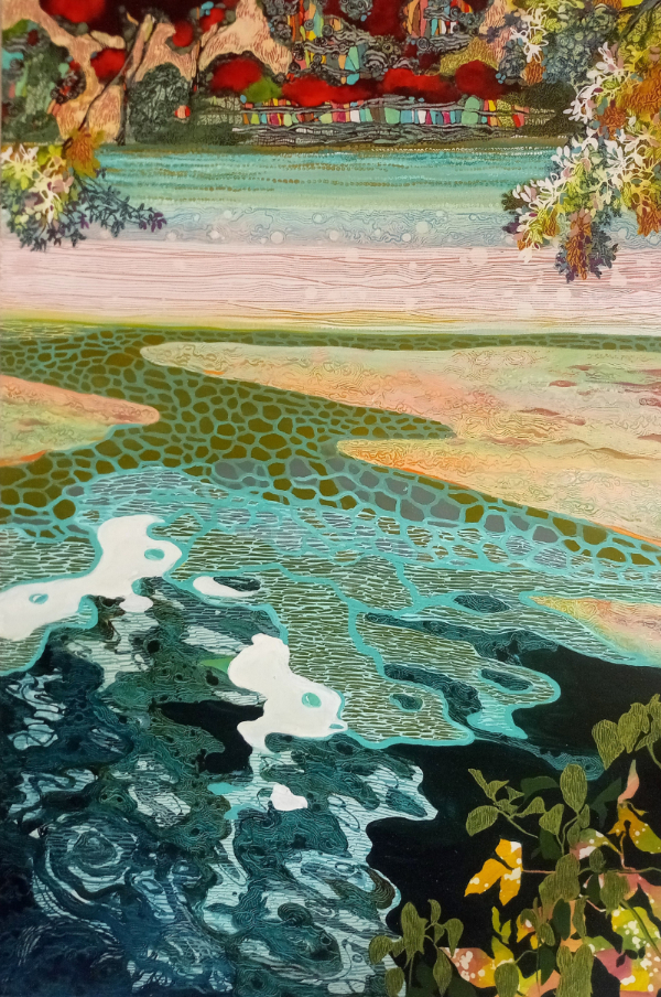 La nature est actuellement ma principale source d’inspiration. Avec une conscience aiguë de sa fragilité, je lui rends hommage en composant des tableaux riches en couleurs et textures. Une multitude de détails s’organisent pour faire vibrer et vivre chaque tableau.
